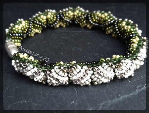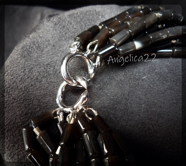 Diese Achate habe ich vor zig Jahren im Elsass gekauft, einmal so braun und einmal in grün. Beide identisch aufgezogen, die Grüne verliess mich, die Braune blieb. Letztens ist ein Strang gerissen , da war es Zeit, ein MakeOver zu machen. Diese RullaBBs hab ich schon ein paar Mal gefädelt, immer in Variationen. Jetzt ist sie modernsiert und darf wieder bewundert werden.