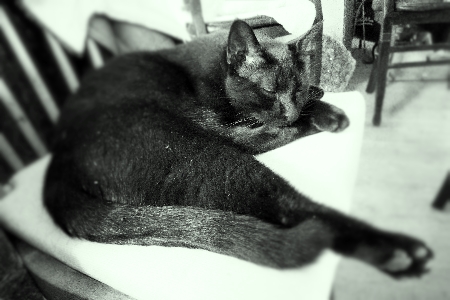 Aber dafür hat sich zu den bereits vorhandenen zwei Katzendamen Minou und Fussel ein pechschwarzer Kater namens Gedeon gesellt. Der stand eines Tages vor der Tür bei meiner Freundin und meinte, er zieht jetzt hier ein. Nach dem medizinischen Check darf er jetzt auf dem Berg wohnen und fühlt sich wirklich wohl. Ein zuckersüßer Kerl.