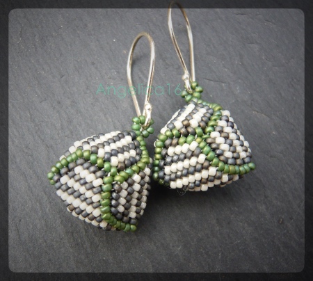ich wollte jemanden zeigen, wie Diana Fitzgerald ihre Anleitungen meint. Und am Besten kann ich das, indem ich parallel fädel. Da kam dann das hier raus, sehr niedlich. Der Zweite war flott gemacht, die Ohrringe waren fertig.