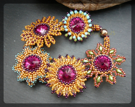 Das Beadalong dieses Jahr in diesem Fall von und mit Jean Power. Da ich von den Rivolis nur zwei Farben in genügender Menge hatte, nämlich Fuchsia und Sand Opal habe ich mich entschieden- tatatata- natürlich für Fuchsia, was denn sonst. Ich dachte mir, wenn Du eh nicht weißt, was es wird, dann knall mal was raus.