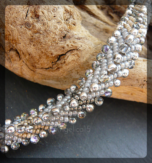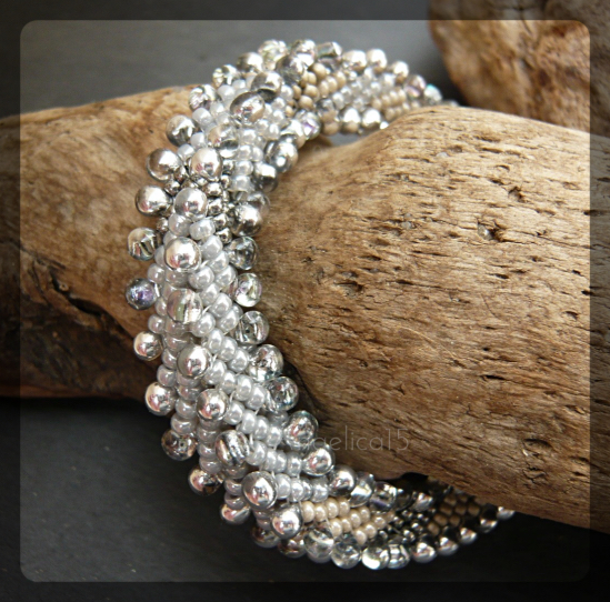 Der Petersburger Stich, den finde ich immer wieder mal sehr schön. Und wenn dann eine Anleitung in der Beadwork erscheint mit vierfachem Petersburger, was soll ich dann wohl anders machen als ausprobieren. Und da in diesem Jahr alles in grau ist (meistens ) , hab ich tief in meine Grautonkiste gegriffen.