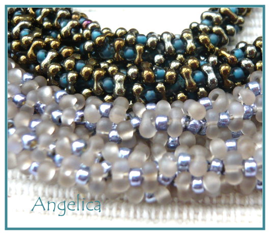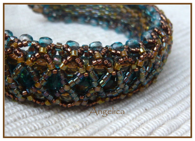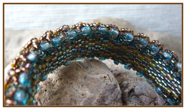 die finde ich wirklich gelungen, nicht nur von meiner Seite bei der Farbwahl ( zweifarbige Sechser!, schön) sondern auch die Anleitung. Das ist mal ein Armband das komplett ist, innen schön, aussen schön und es legt sich automatisch in Armreifenform, ohne steif zu sein.