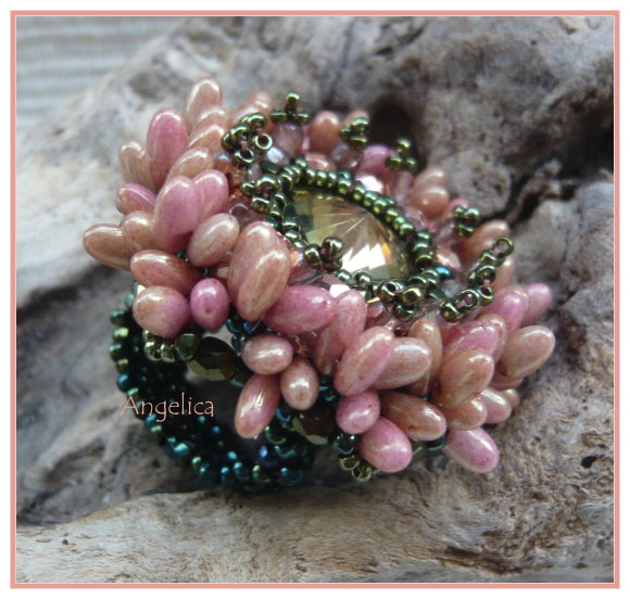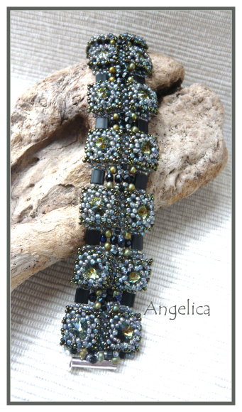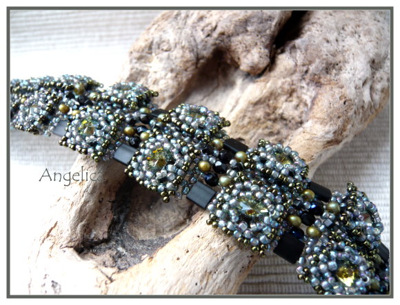 normalerweise ist ja bling nicht ganz so meins, andererseits mag ich die Anleitungen von Lilith , da sie doch mal etwas interessanter zu fädeln sind. Endgültig überzeugt war ich aber , als ich es beim letzten Deutschlandtreffen des Forums dann am Arm hatte. Da hat sie mir dann so gut gefallen, das es sein mußte. Letzte Woche hatte ich dann die nötige Muße, here it is. Das Grau hatten wir neu im Shop, das ist ein wirklich rundes, sanftes Grau mit Tiefe, als dann aber das Grün dazu kam, wurde es immer fliederfarbiger. Passt aber genau.