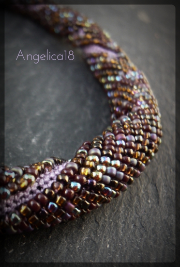 Als die Opera von Jennifer Airs Mode war, hab ich ja einige gefädelt. Dann später nochmal runtergerechnet auf einen kleineren Durchmesser. Und dann wollte ich eine bunte Cellini machen in Herringbone.