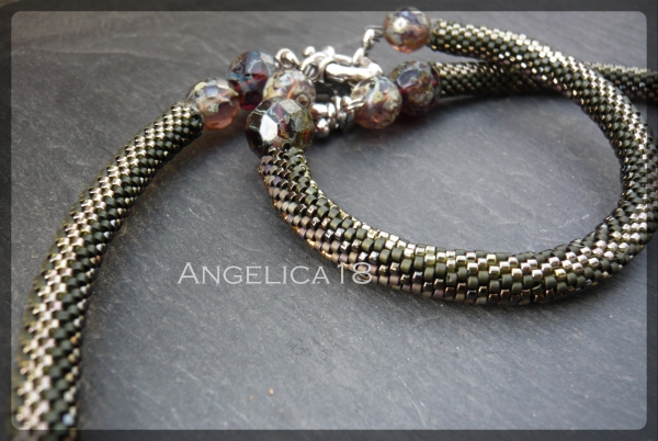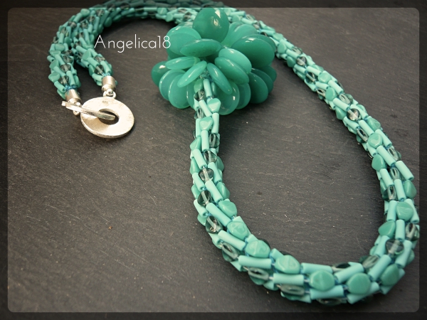 eigentlich nur eine Armbandidee, aber für mich normal zu schmal und fipsig. Deshalb habe ich es doppelt gearbeitet und als Wickelarmband gefertigt.