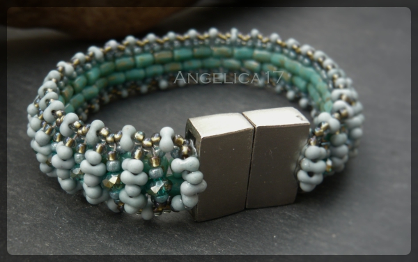 dann wollte ich ja immer mal ein gewickeltes Armband haben, naja , es nicht ganz gewickelt, sieht aber trotzdem gut aus , die Vorlage war von Debra Schwarz.