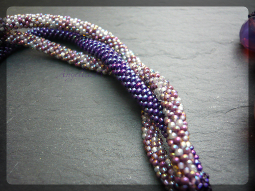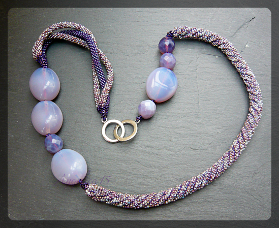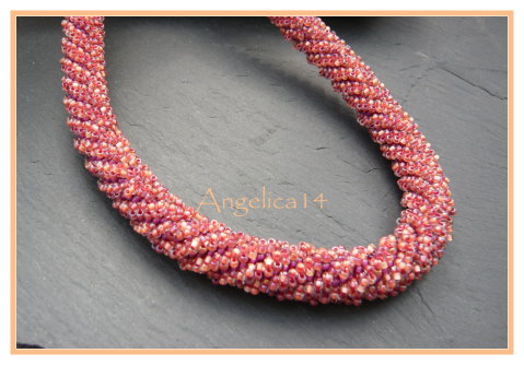 Die Kette sollte die Farbe wirken lassen, aber ich wollte eine Glanzreihe drin haben. Jetzt bin ich nicht der MeshFreund, zu kratzig und zu laut im Auftritt. Drops wären zu wenig gewesen. Und 2mm Cubes in Crystal Silverlined, mattiert, wirken genau richtig.